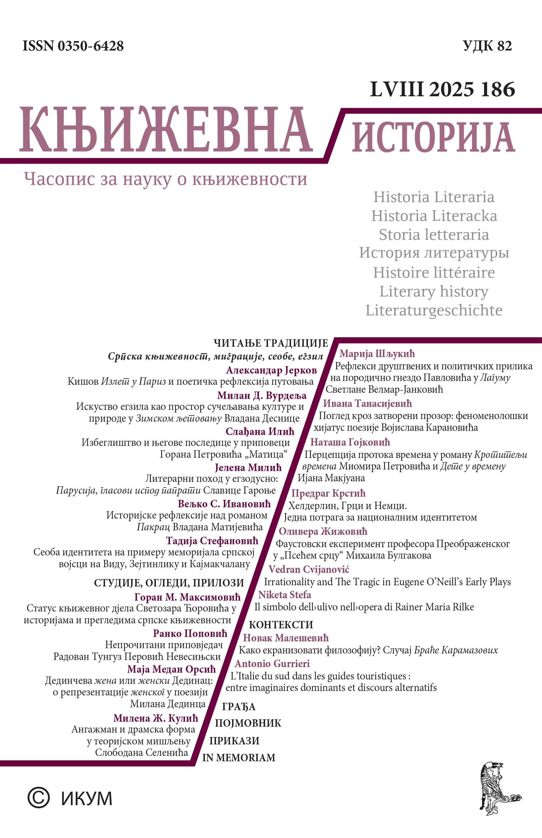 Год. 57 Бр. 186 (2025)ЧИТАЊЕ ТРАДИЦИЈЕ: Српска књижевност, миграције, сеобe, егзил